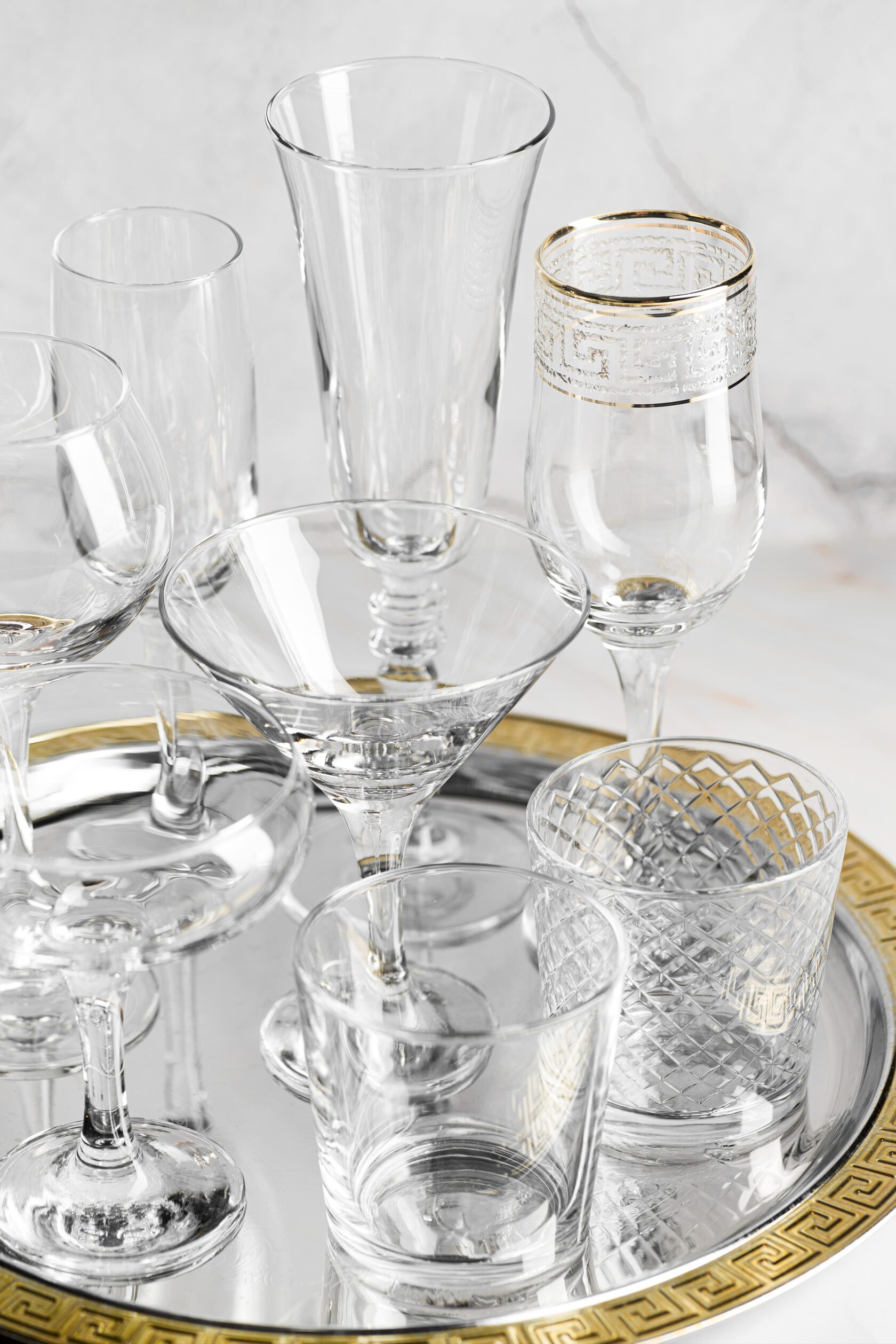 - Используются тонкостенные бокалы, часто украшенные гравировкой.